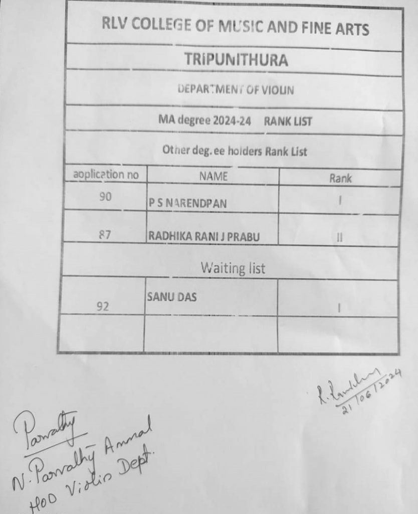 MA Veena 2024 (Other Discipline) Rank List